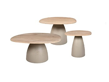 kasten, tafels, banken, kruk- en poefjes tot lampen, broodplanken,